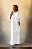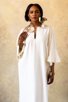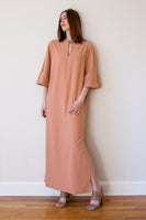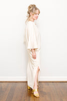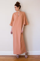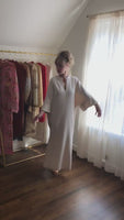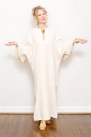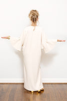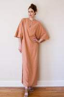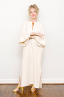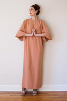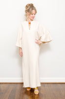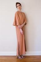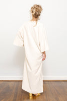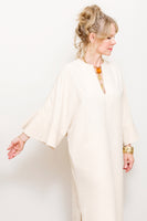 This Caftan was brought to life from a collaboration between BORN INTO MONEY and SARAH NELSEN. Fittingly named, Denaro, (that’s Money in Italian) this piece was inspired by the love for 60s and 70s style. Made from Raw Silk, it’s effortlessly cool and features a slit v-neckline, fabulous cuff details and side slits. Take it on a vacation or just float around the house feeling like a retro style maven.