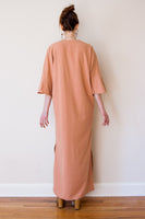 • Sarah is 5’10” and wearing a size Small, Long Length in Rose Raw Silk.