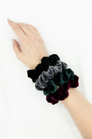 The scrunchie is back! These super soft and luxurious scrunchies make for a quick and elegant updo. They also work great around your wrist as a bracelet.