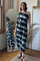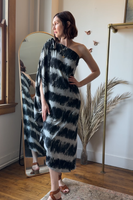 Desert Dress RTW in Gray & Black Diagonal Striped Terrycloth