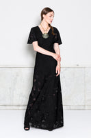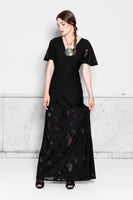 The Black Onyx Dress is made from an exquisitely detailed laser cut floral patterned knit. Comfortable yet sophisticated in design, the Onyx Dress dress is a nod to the stone itself, its sophisticated power, and the beautiful lines and confidence only a black dress can bring. It is said that even Cleopatra used to wear Black Onyx for its protective features.
