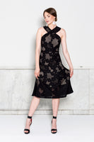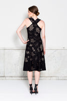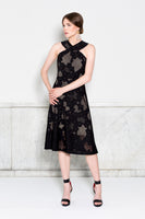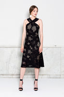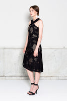 Crisscross Halter Dress RTW in Black Lasercut Floral