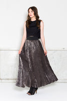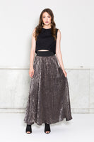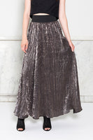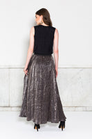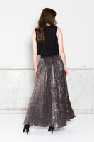 A floaty, full skirt with metallic texture. Pairs perfectly with the Sculptured Crop Top. Available with a wide elastic waistband or more traditional narrow fabric waistband and side zipper.